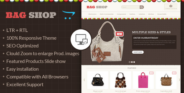 Features: Admin Panel, Responsive, Bootstrap Bootstrap Version: 3.1.0 Animation: HTML plus JS Functionality: Online Store/Shop Layout: 2 columns Width: 1950px Installation: Installation and set up instructions are attached (look for Documentation folder). Language support: English, Spanish, German Additional Features: Sliced PSD, Back To Top Button, Commenting System, Crossbrowser C...