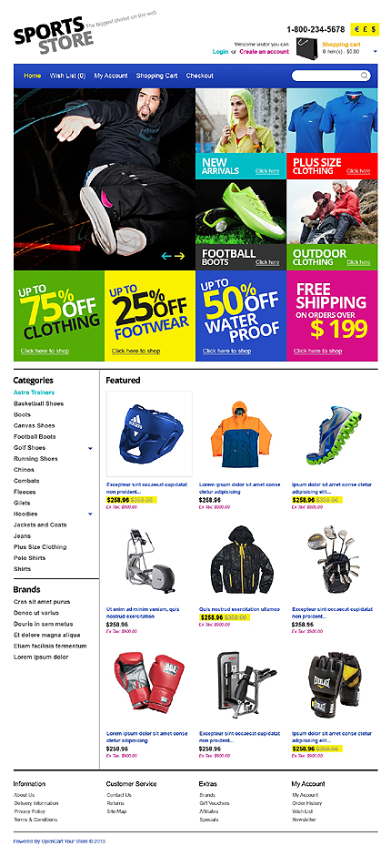 Template Name: Sport Items Item number: 43221 Template Type: OpenCart Author: Hermes Downloads: 1 OpenCart Engine: 1.5.5.1 OpenCart Compatibility: 1.5.5.1 Sources Available: .PSD;.PNG;.PHP;.TPL;.JS Software Required: Adobe Photoshop CS+;Apache Server;Adobe Dreamweaver 8+ (or any php-editor);For uncompressing a template ZIP package: Wi...