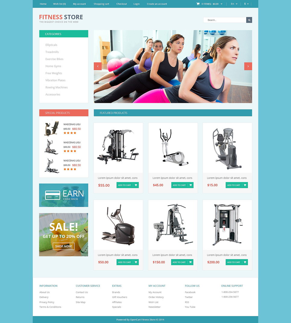 OpenCart Engine: 1.5.6.1 OpenCart Compatibility: 1.5.6, 1.5.6.1, 1.5.6.2, 1.5.6.3 Features: Admin Panel, Responsive, Bootstrap Bootstrap Version: 3.1.0 Animation: HTML plus JS Functionality: Online Store/Shop Layout: 2 columns Width: 2000px Installation: Installation and set up instructions are attached (look for Documentation folder). Language support: English, Spanish, German ...