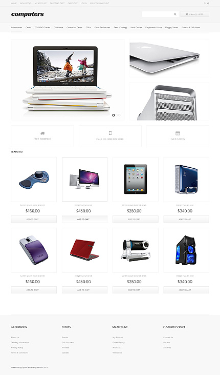 White OpenCart Computer Store Theme by Cowboy TMT