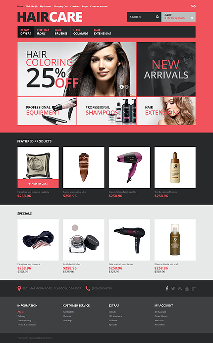 Template Name: Black & White Hair Salon OpenCart Theme by Hermes Item number: 46708 Template Type: OpenCart Author: Hermes Downloads: 0 OpenCart Engine: 1.5.6 OpenCart Compatibility: 1.5.6 Sources Available: .PSD;.PNG;.PHP;.TPL;.JS Software Required: Adobe Photoshop CS+;Apache Server;Adobe Dreamweaver 8+ (or any php-editor);For uncomp...