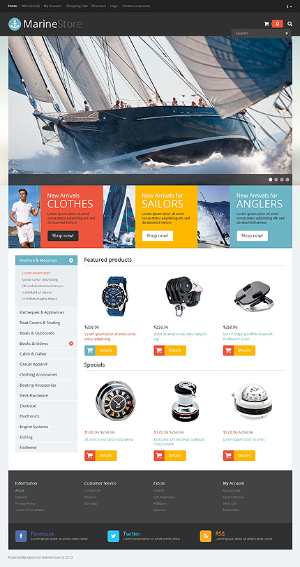White & Black Yachting OpenCart Theme by Hermes OpenCart TMT