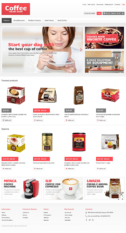White Coffee Shop OpenCart Theme by Hermes OpenCart TMT