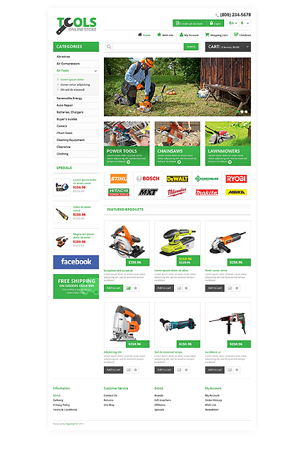 Template Name: Responsive Tools Store Item number: 45524 Template Type: OpenCart Author: Hermes Downloads: 0 OpenCart Engine: 1.5.5.1 OpenCart Compatibility: 1.5.5.1 Sources Available: .PSD;.PNG;.PHP;.TPL;.JS Software Required: Adobe Photoshop CS+;Apache Server;Adobe Dreamweaver 8+ (or any php-editor);For uncompressing a template ZIP ...