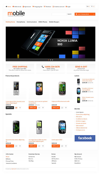White & Black Mobile Store OpenCart Theme by Hermes OpenCart TMT