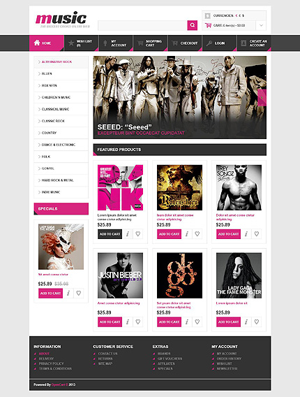 White & Black Music Store OpenCart Theme by Hermes OpenCart TMT