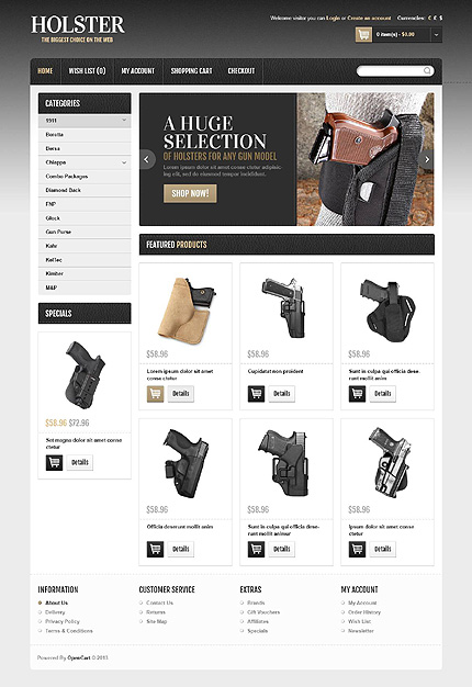 White & Black Gun Shop OpenCart Theme by Hermes OpenCart TMT