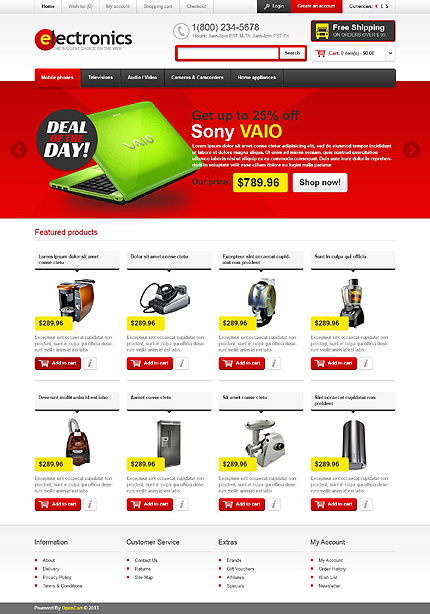 Template Name: White Electronics Store OpenCart Theme by Hermes Item number: 45094 Template Type: OpenCart Author: Hermes Downloads: 0 OpenCart Engine: 1.5.5.1 OpenCart Compatibility: 1.5.5.1 Sources Available: .PSD;.PNG;.PHP;.TPL;.JS Software Required: Adobe Photoshop CS+;Apache Server;Adobe Dreamweaver 8+ (or any php-editor);For unc...