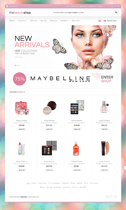 Template Name: Beauty Shop Item number: 44026 Template Type: OpenCart Author: Delta Downloads: 4 OpenCart Engine: 1.5.5.1 OpenCart Compatibility: 1.5.5.1 Sources Available: .PSD;.PNG;.PHP;.TPL;.JS Software Required: Adobe Photoshop CS+;Apache Server;Adobe Dreamweaver 8+ (or any php-editor);For uncompressing a template ZIP package: Win...