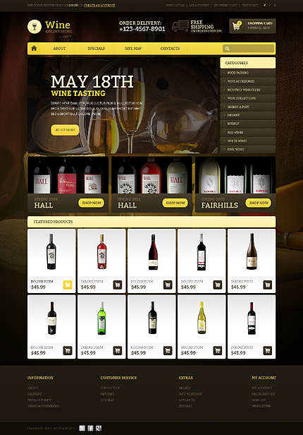 Template Name: Online Wine Store Item number: 44136 Template Type: OpenCart Author: Ares Downloads: 2 OpenCart Engine: 1.5.5.1 OpenCart Compatibility: 1.5.5.1 Sources Available: .PSD;.PNG;.PHP;.TPL;.JS Software Required: Adobe Photoshop CS+;Apache Server;Adobe Dreamweaver 8+ (or any php-editor);For uncompressing a template ZIP package...