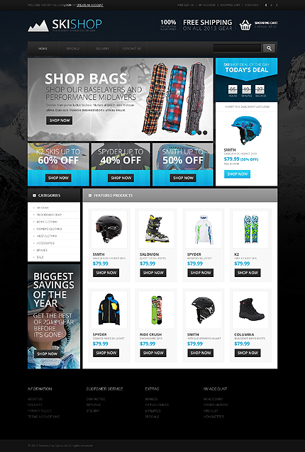 Template Name: Ski Shop Item number: 44027 Template Type: OpenCart Author: Ares Downloads: 2 OpenCart Engine: 1.5.5.1 OpenCart Compatibility: 1.5.5.1 Sources Available: .PSD;.PNG;.PHP;.TPL;.JS Software Required: Adobe Photoshop CS+;Apache Server;Adobe Dreamweaver 8+ (or any php-editor);For uncompressing a template ZIP package: WinZip ...