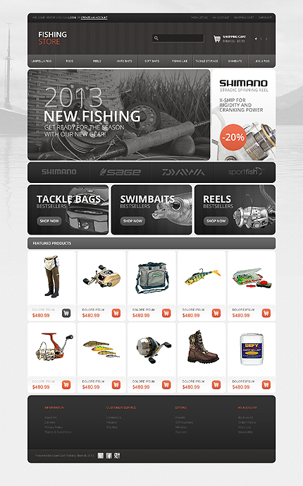 Template Name: Fishing Store Item number: 44766 Template Type: OpenCart Author: Ares Downloads: 1 OpenCart Engine: 1.5.5.1 OpenCart Compatibility: 1.5.5.1 Sources Available: .PSD;.PNG;.PHP;.TPL;.JS Software Required: Adobe Photoshop CS+;Apache Server;Adobe Dreamweaver 8+ (or any php-editor);For uncompressing a template ZIP package: Wi...