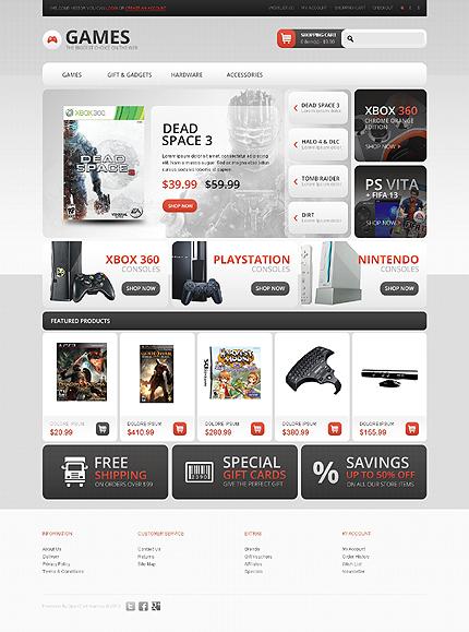 Template Name: Games & Consoles Item number: 44765 Template Type: OpenCart Author: Ares Downloads: 1 OpenCart Engine: 1.5.5.1 OpenCart Compatibility: 1.5.5.1 Sources Available: .PSD;.PNG;.PHP;.TPL;.JS Software Required: Adobe Photoshop CS+;Apache Server;Adobe Dreamweaver 8+ (or any php-editor);For uncompressing a template ZIP package:...