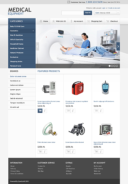 Template Name: Medical Equipment Item number: 44692 Template Type: OpenCart Author: Hermes Downloads: 1 OpenCart Engine: 1.5.5.1 OpenCart Compatibility: 1.5.5.1 Sources Available: .PSD;.PNG;.PHP;.TPL;.JS Software Required: Adobe Photoshop CS+;Apache Server;Adobe Dreamweaver 8+ (or any php-editor);For uncompressing a template ZIP packa...