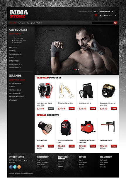 Template Name: Martial Arts Store Item number: 41339 Template Type: OpenCart Author: Hermes Downloads: 4 OpenCart Engine: 1.5.4.1 OpenCart Compatibility: 1.5.4.1 Sources Available: .PSD;.PNG;.PHP;.TPL;.JS Software Required: Adobe Photoshop CS+;Apache Server;Adobe Dreamweaver 8+ (or any php-editor);For uncompressing a template ZIP pack...