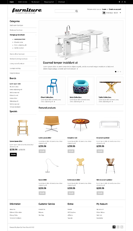 Template Name: Modern Interior Item number: 41336 Template Type: OpenCart Author: Hermes Downloads: 3 OpenCart Engine: 1.5.4.1 OpenCart Compatibility: 1.5.4.1 Sources Available: .PSD;.PNG;.PHP;.TPL;.JS Software Required: Adobe Photoshop CS+;Apache Server;Adobe Dreamweaver 8+ (or any php-editor);For uncompressing a template ZIP package...