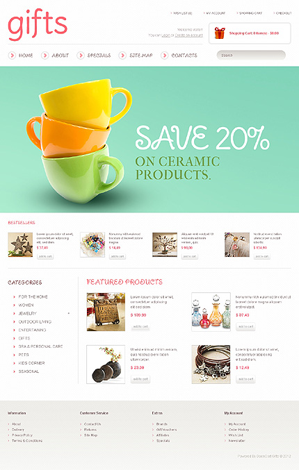 Template Name: Special Gifts Item number: 41470 Template Type: OpenCart Author: Oldman Downloads: 3 OpenCart Engine: 1.5.4.1 OpenCart Compatibility: 1.5.4.1 Sources Available: .PSD;.PNG;.PHP;.TPL;.JS Software Required: Adobe Photoshop CS+;Apache Server;Adobe Dreamweaver 8+ (or any php-editor);For uncompressing a template ZIP package: ...