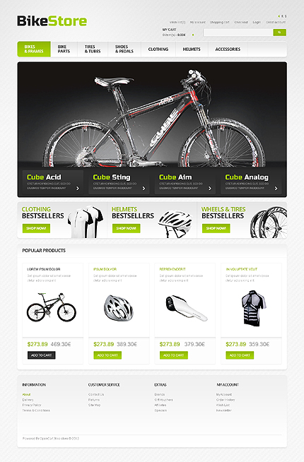 Template Name: Bikes & Spares Item number: 40842 Template Type: OpenCart Author: Hermes Downloads: 4 OpenCart Engine: 1.5.4.1 OpenCart Compatibility: 1.5.4.1 Sources Available: .PSD;.PNG;.PHP;.TPL;.JS Software Required: Adobe Photoshop CS+;Apache Server;Adobe Dreamweaver 8+ (or any php-editor);For uncompressing a template ZIP package:...