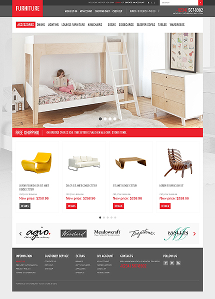 Template Name: Furniture Creating Comfort Item number: 40568 Template Type: OpenCart Author: Hermes Downloads: 2 OpenCart Engine: 1.5.3.1 OpenCart Compatibility: 1.5.3.1 Sources Available: .PSD;.PNG;.PHP;.TPL;.JS Software Required: Adobe Photoshop CS+;Apache Server;Adobe Dreamweaver 8+ (or any php-editor);For uncompressing a template ...