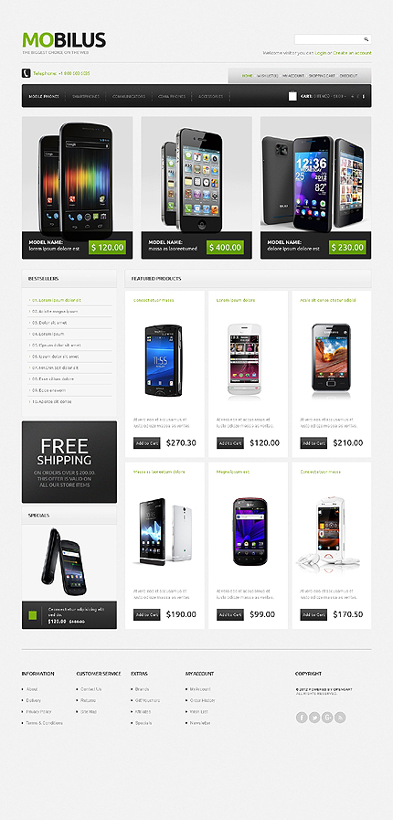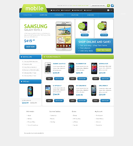 Template Name: Mobile Phones Store Item number: 42365 Template Type: OpenCart Author: Ares Downloads: 3 OpenCart Engine: 1.5.4.1 OpenCart Compatibility: 1.5.4.1 Sources Available: .PSD;.PNG;.PHP;.TPL;.JS Software Required: Adobe Photoshop CS+;Apache Server;Adobe Dreamweaver 8+ (or any php-editor);For uncompressing a template ZIP packa...