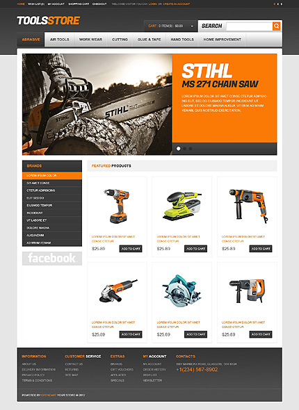 Template Name: Working Tools Item number: 40566 Template Type: OpenCart Author: Hermes Downloads: 4 OpenCart Engine: 1.5.3.1 OpenCart Compatibility: 1.5.3.1 Sources Available: .PSD;.PNG;.PHP;.TPL;.JS Software Required: Adobe Photoshop CS+;Apache Server;Adobe Dreamweaver 8+ (or any php-editor);For uncompressing a template ZIP package: ...