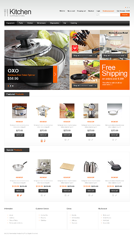 Template Name: Chef's Choice Item number: 40522 Template Type: OpenCart Author: Hermes Downloads: 4 OpenCart Engine: 1.5.3.1 OpenCart Compatibility: 1.5.3.1 Sources Available: .PSD;.PNG;.PHP;.TPL;.JS Software Required: Adobe Photoshop CS+;Apache Server;Adobe Dreamweaver 8+ (or any php-editor);For uncompressing a template ZIP package: ...