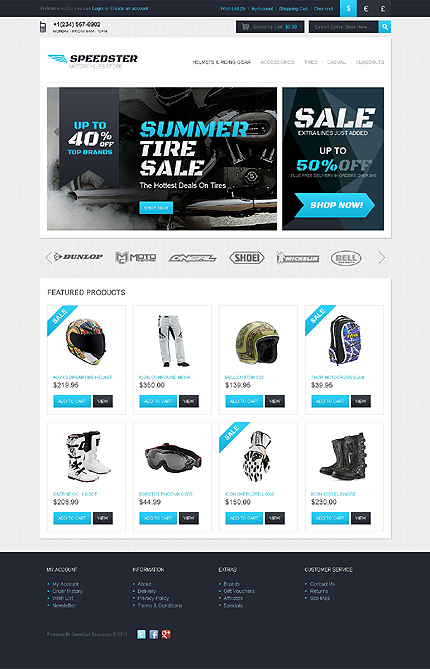 Template Name: Speedster Item number: 40569 Template Type: OpenCart Author: Ares Downloads: 1 OpenCart Engine: 1.5.3.1 OpenCart Compatibility: 1.5.3.1 Sources Available: .PSD;.PNG;.PHP;.TPL;.JS Software Required: Adobe Photoshop CS+;Apache Server;Adobe Dreamweaver 8+ (or any php-editor);For uncompressing a template ZIP package: WinZip...