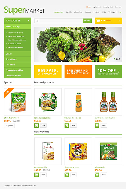 Template Name: White Grocery Store Zen Cart Template by Hermes Item number: 47069 Template Type: Zen Cart Author: Hermes Downloads: 0 ZenCart Engine: 1.5.x ZenCart Compatibility: 1.3.8-1.5.x Sources Available: .PSD;.PHP Software Required: Adobe Photoshop CS+;PHP 5.2.14 or higher; MySQL 4.1.3 or higher;Apache 2.0 or higher;PHP configur...