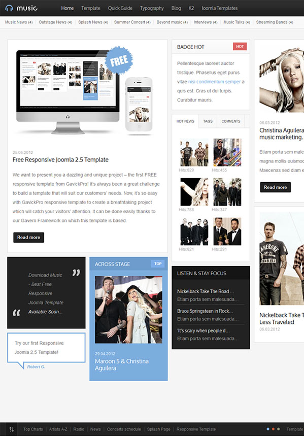 Music Free Make your own music website with this responsive free Joomla 2.5 &