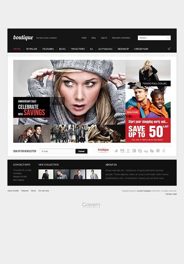 Boutique With this Joomla 2.5 & 3.0 store template you can create an ecommerc