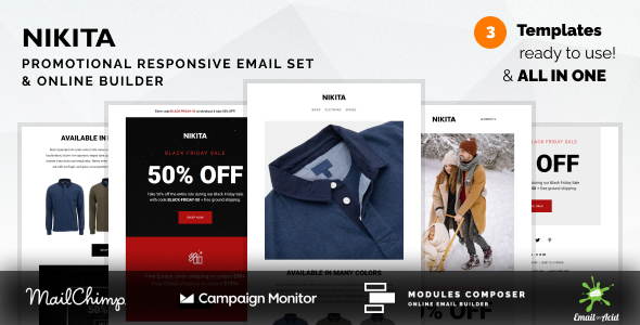 Nikita - Promotional Email Templates Set with Online Builder TFx