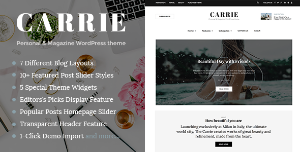 Carrie - Personal & Magazine WordPress Responsive Clean Blog Theme TFx