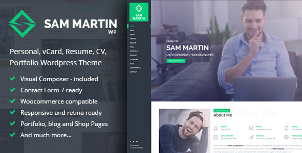 Sam Martin - Personal vCard Resume WordPress Theme TFx