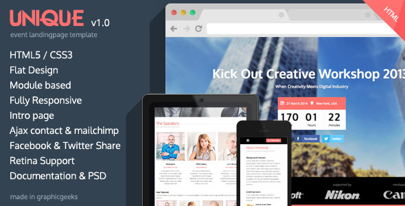 Unique - Responsive HTML5 Flat Event Landingpage