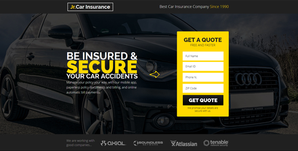 Jr. Auto Insurance Landing Page - Responsive HTML5 Template - Corporate Landing Pages TFx Baxter Hiroki
