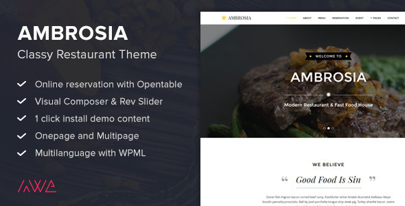 Ambrosia - Classy Restaurant Wordpress Theme TFx