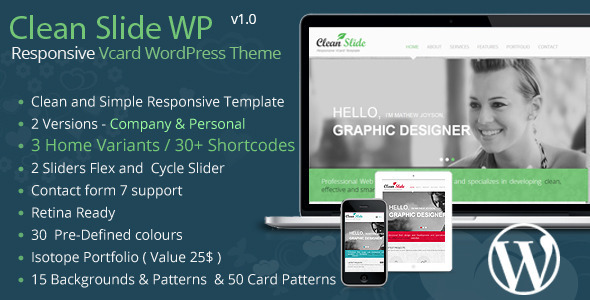 Clean Slide Responsive vCard Wordpress Theme TForest