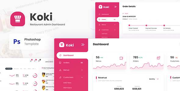Koki - Restaurant Food Admin Dashboard UI PSD Template TFx