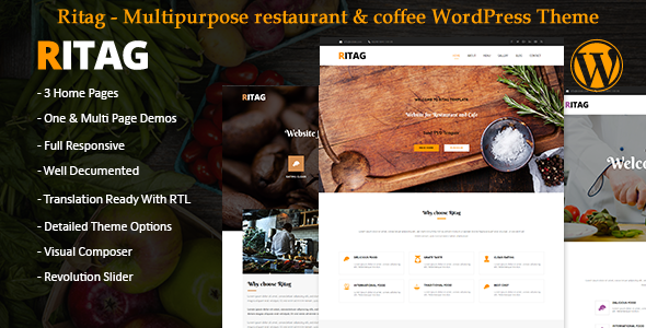 Ritag - Multipurpose restaurant & coffee WordPress Theme TFx