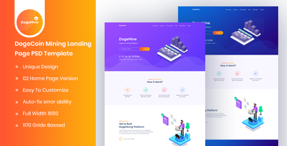 Dogemine - DogeCoin Mining Website HTML Template TFx Inigo Royle