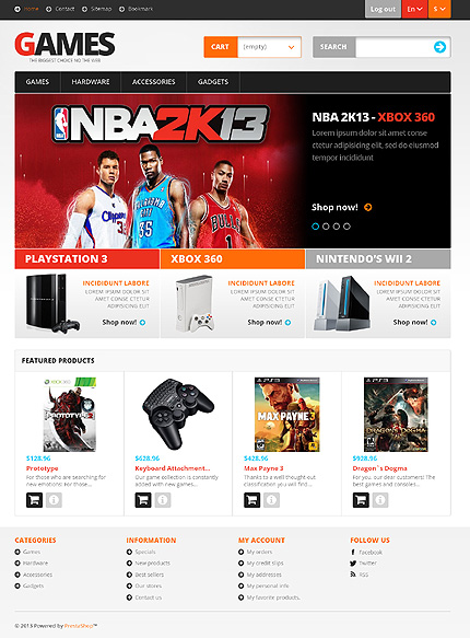 White & Black Games PrestaShop Template by Hermes PrestaShop TMT