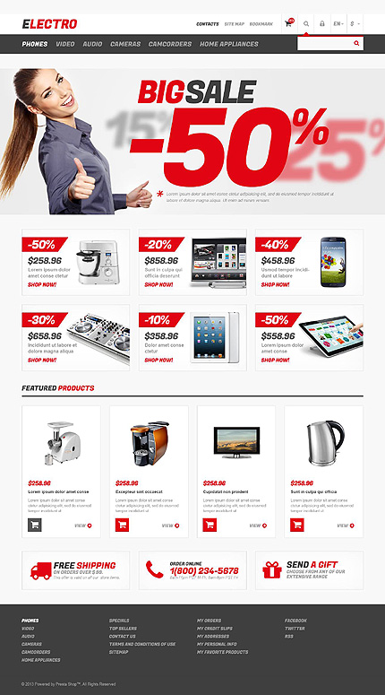 Template Name: White Electronics Store PrestaShop Theme by Hermes Item number: 45299 Template Type: PrestaShop Author: Hermes Downloads: 1 PrestaShop Engine: 1.5.4.1 PrestaShop Compatibility: 1.5.x The template is fully compatible with PrestaShop 1.5.x. But sample data SQL files are only compatible with the exact version of PrestaShop Engin...