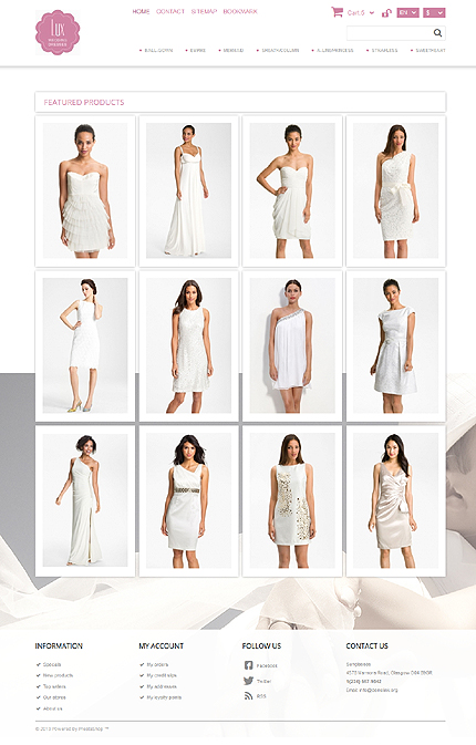 Template Name: Responsive Wedding Dresses Store Item number: 44508 Template Type: PrestaShop Author: Delta Downloads: 2 PrestaShop Engine: 1.5.3.1 PrestaShop Compatibility: 1.5.x The template is fully compatible with PrestaShop 1.5.x. But sample data SQL files are only compatible with the exact version of PrestaShop Engine it was developed ...