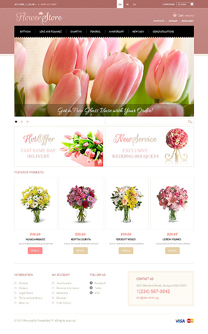 Template Name: Flowers Store Item number: 43860 Template Type: PrestaShop Author: Delta Downloads: 2 PrestaShop Engine: 1.5.3.1 PrestaShop Compatibility: 1.5.x The template is fully compatible with PrestaShop 1.5.x. But sample data SQL files are only compatible with the exact version of PrestaShop Engine it was developed for. Sources Ava...