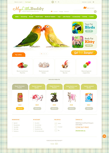 Template Name: My Little Buddy Item number: 43887 Template Type: PrestaShop Author: Delta Downloads: 1 PrestaShop Engine: 1.5.3.1 PrestaShop Compatibility: 1.5.x The template is fully compatible with PrestaShop 1.5.x. But sample data SQL files are only compatible with the exact version of PrestaShop Engine it was developed for. Sources A...