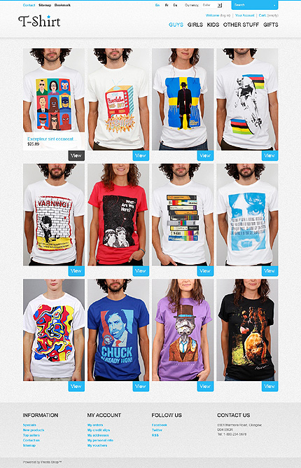 Template Name: T-Shirt Store Item number: 43999 Template Type: PrestaShop Author: Hermes Downloads: 3 PrestaShop Engine: 1.5.3.1 PrestaShop Compatibility: 1.5.x The template is fully compatible with PrestaShop 1.5.x. But sample data SQL files are only compatible with the exact version of PrestaShop Engine it was developed for. Sources Av...