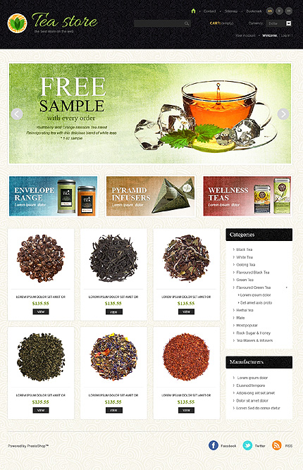 Template Name: Tea Store Item number: 43886 Template Type: PrestaShop Author: Di Downloads: 2 PrestaShop Engine: 1.5.3.1 PrestaShop Compatibility: 1.5.x The template is fully compatible with PrestaShop 1.5.x. But sample data SQL files are only compatible with the exact version of PrestaShop Engine it was developed for. Sources Available:...