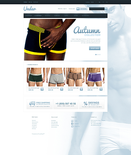 Template Name: Underwear for Men Item number: 43294 Template Type: PrestaShop Author: Ares Downloads: 1 PrestaShop Engine: 1.5.2.0 PrestaShop Compatibility: 1.5.x The template is fully compatible with PrestaShop 1.5.x. But sample data SQL files are only compatible with the exact version of PrestaShop Engine it was developed for. Sources ...