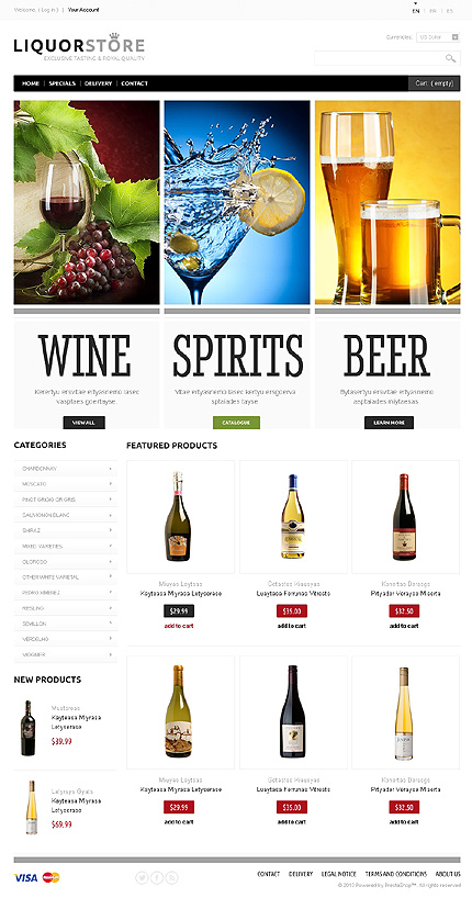 Template Name: Alcoholic Beverages Item number: 43291 Template Type: PrestaShop Author: Delta Downloads: 2 PrestaShop Engine: 1.5.3.1 PrestaShop Compatibility: 1.5.x The template is fully compatible with PrestaShop 1.5.x. But sample data SQL files are only compatible with the exact version of PrestaShop Engine it was developed for. Sourc...