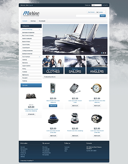 Template Name: Marine Equipment Item number: 43289 Template Type: PrestaShop Author: Hermes Downloads: 4 PrestaShop Engine: 1.5.2.0 PrestaShop Compatibility: 1.5.x The template is fully compatible with PrestaShop 1.5.x. But sample data SQL files are only compatible with the exact version of PrestaShop Engine it was developed for. Sources...
